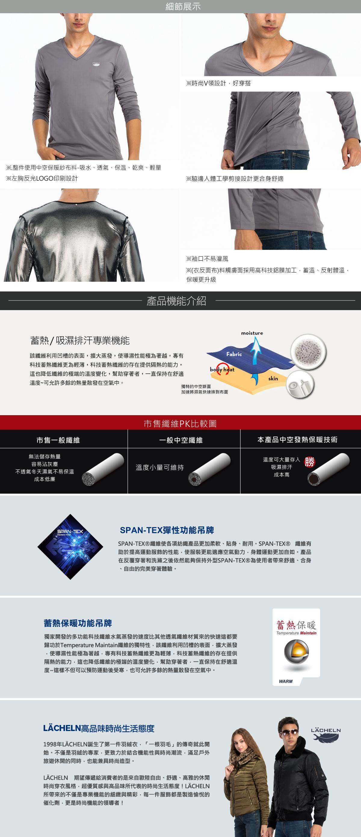 男太空蓄熱保暖V領衫