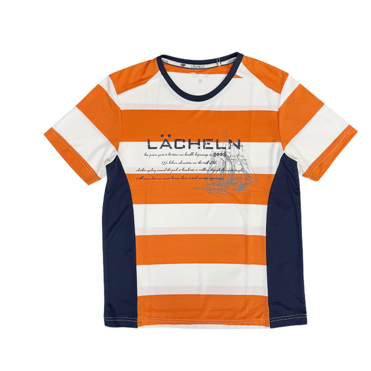 剪接條紋快乾圓T