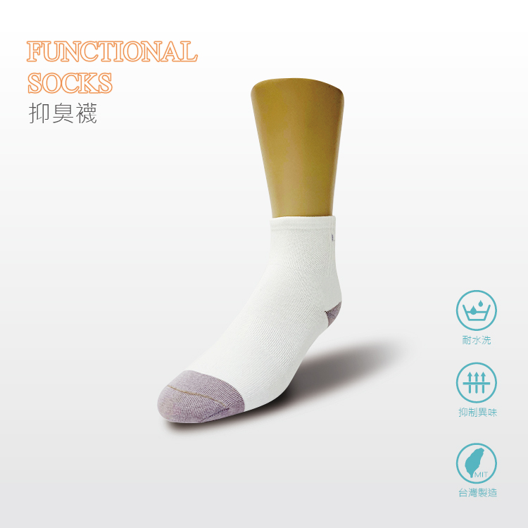 中性中統抑臭襪-白/中灰