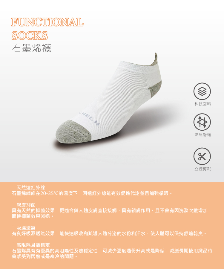 中性船型石墨烯襪-白/深灰