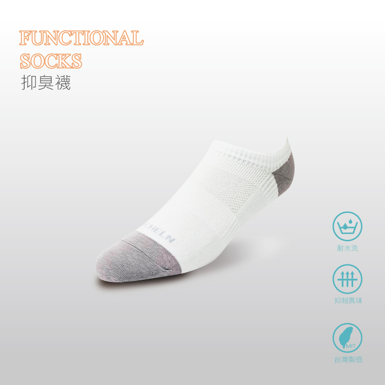 中性抑臭短襪-白/中灰