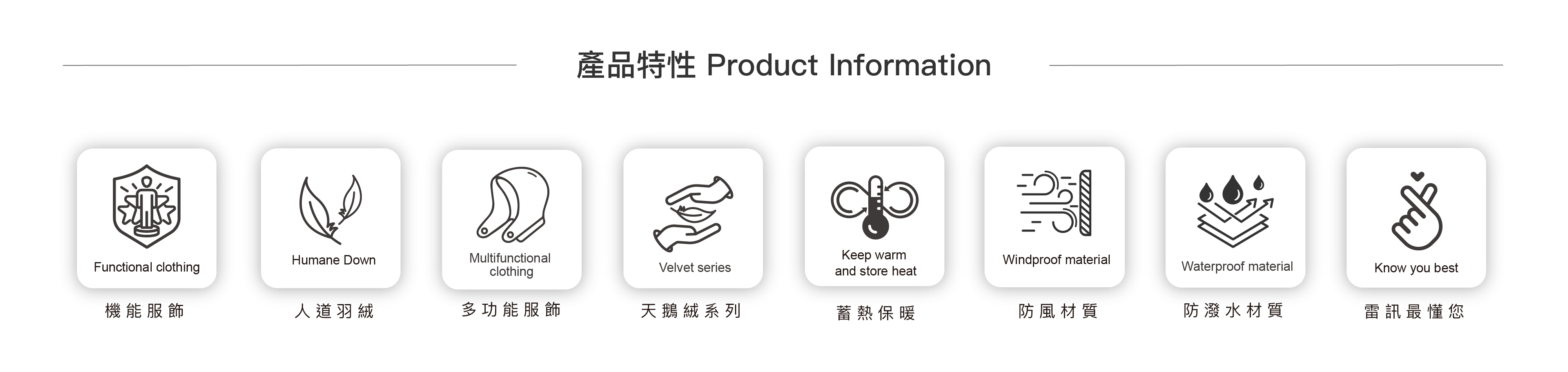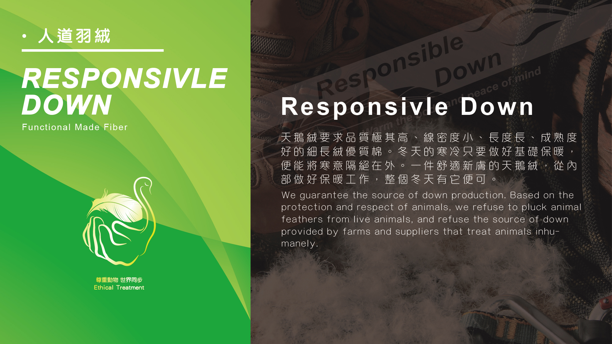 ‧採用人道防潑水羽絨,取得認證品質保證不易受潮
