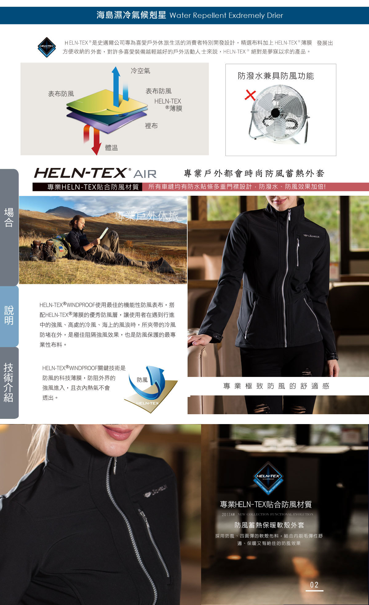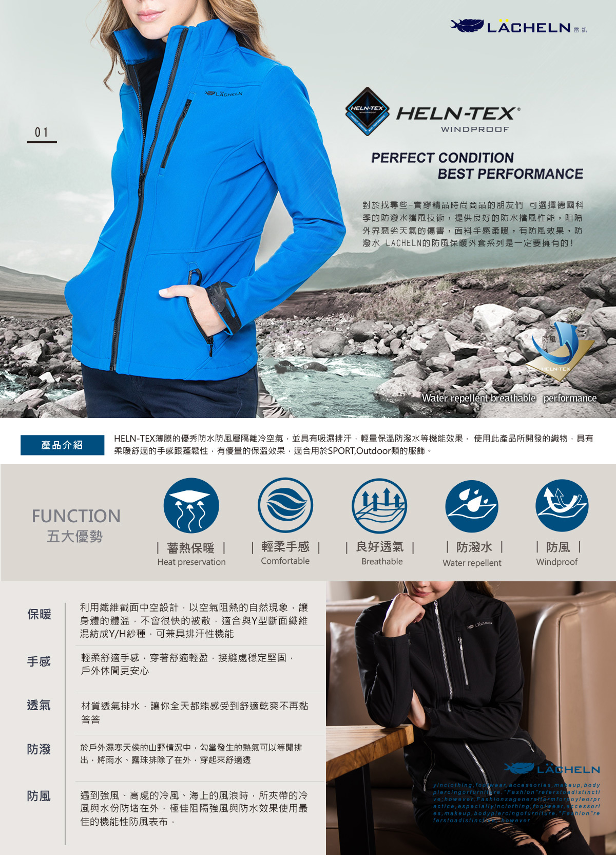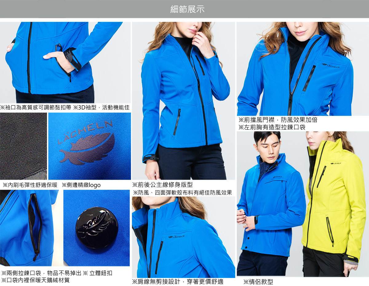 ‧採用防風、四面彈的軟殼布料,結合內刷毛彈性舒適、保暖又有絕佳的防風效果