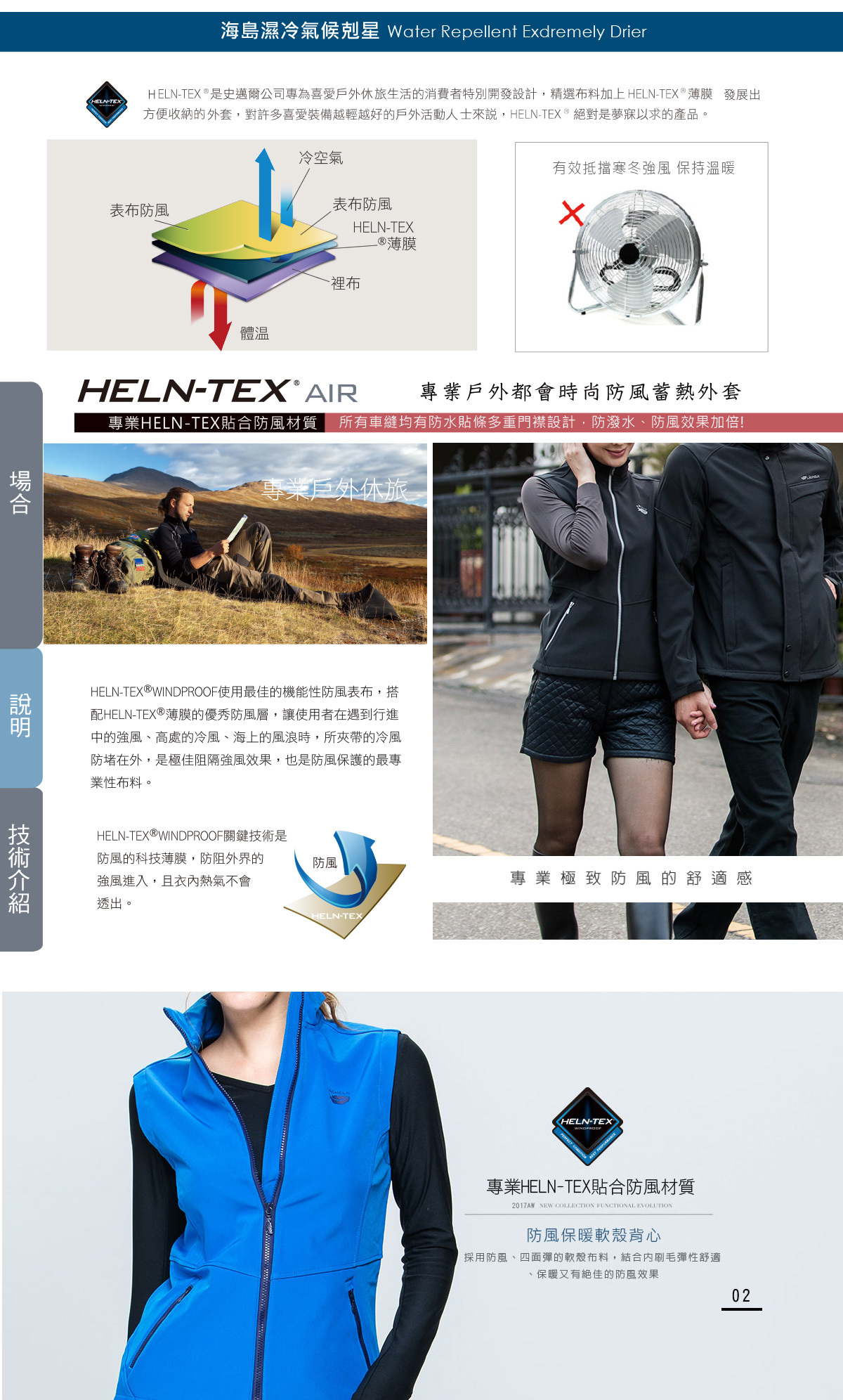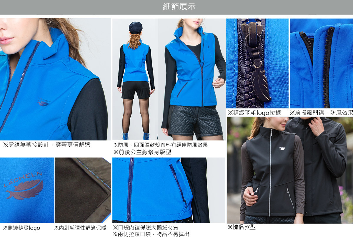 ‧採用防風、四面彈的軟殼布料,結合內刷毛彈性舒適、保暖又有絕佳的防風效果