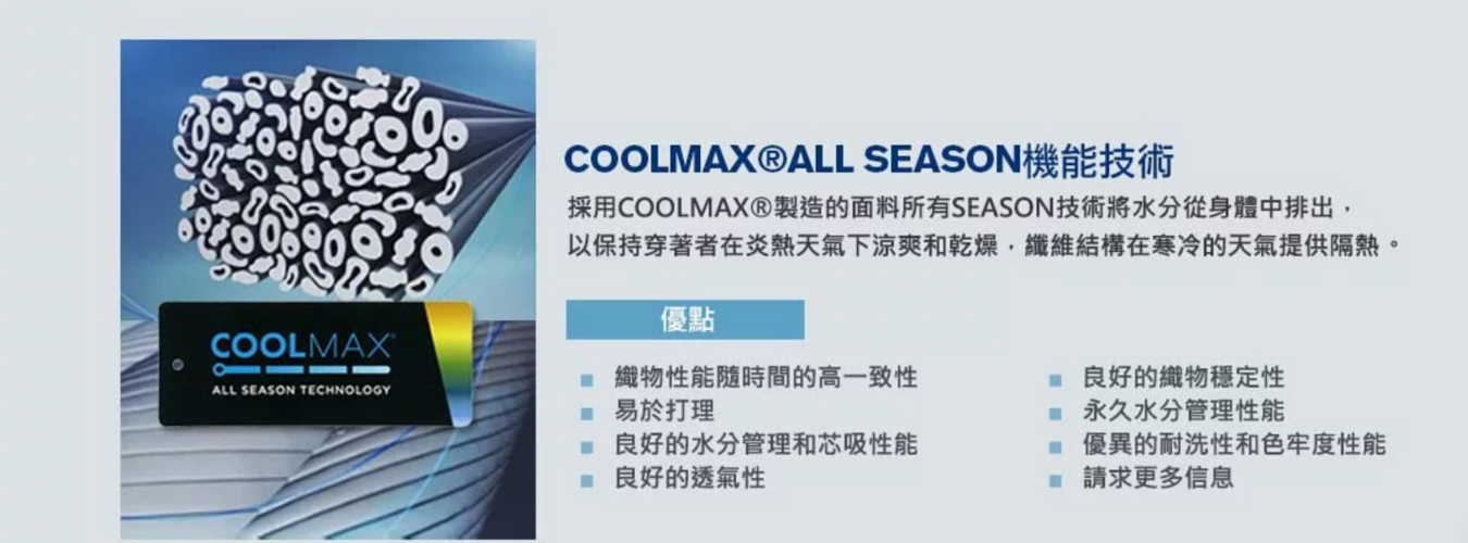 .國際認證Coolmax吸排纖維,透氣不悶熱