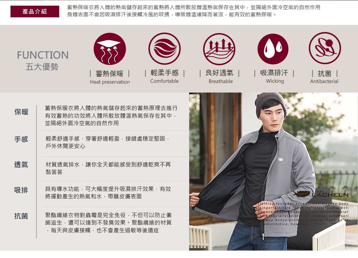 ‧蓄溫內刷微彈面料,舒適膚觸輕暖首選