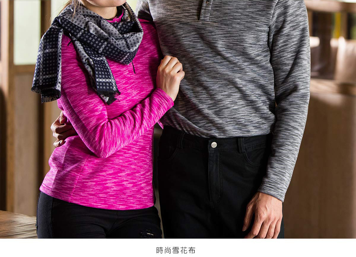 ‧雙面不同織法,外有時尚雪花布紋,內有保暖內刷毛