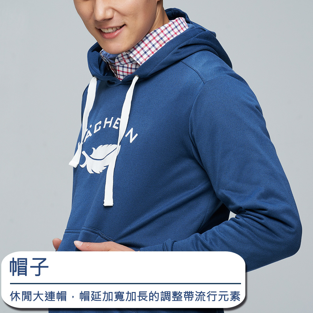 ‧休閒大連帽,帽延加寬加長的調整帶流行元素
